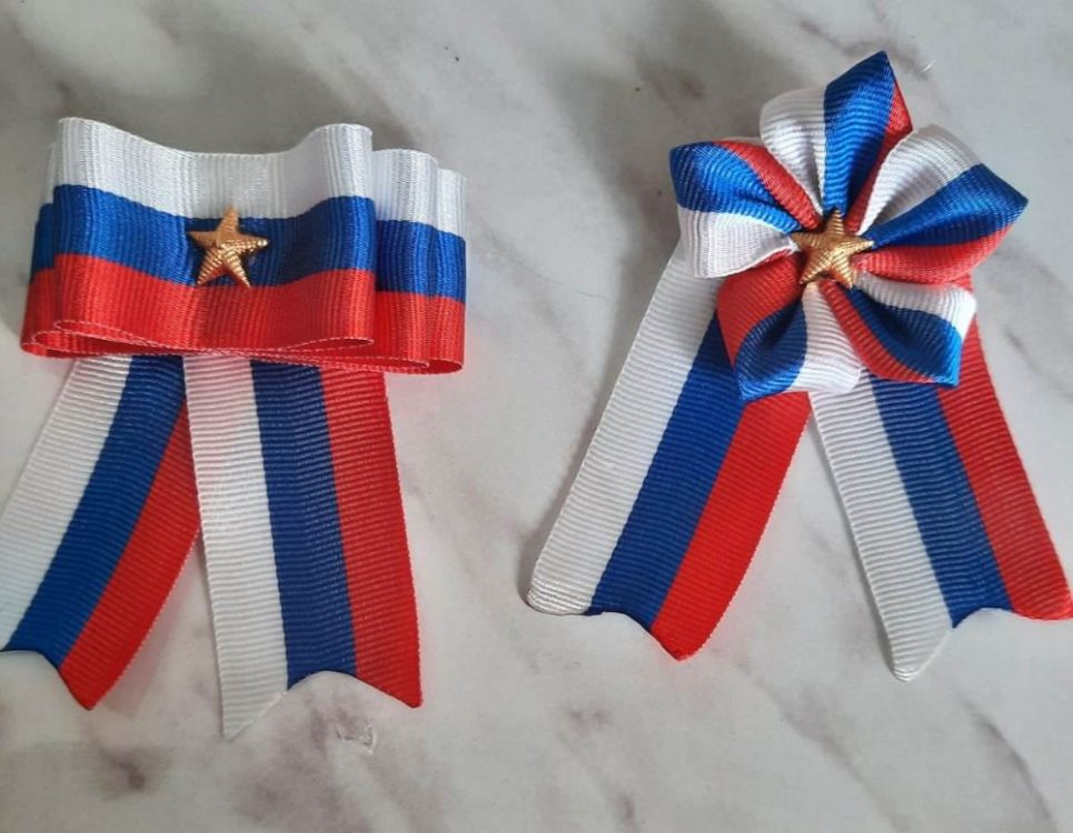 Мастер-класс Брошь в технике канзаши «Триколор России»